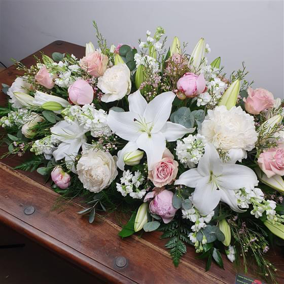 Blush Pink & White Coffin Spray